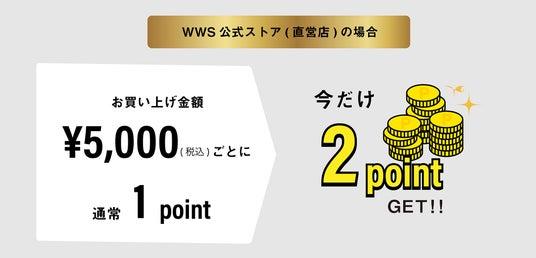 内容:期間中に、WWS公式ストアにてご購入いただくと、ストアカードへのポイント付与が通常の2倍になります。