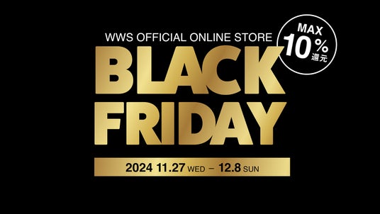 この度、11月27日(水)~12月8日(日)の期間、WWS公式オンラインストアとWWS公式ストアにてブラックフライデーを開催いたします。公式オンラインストアでは最大10%ポイント還元、公式ストアでは通常の2倍のポイントを付与いたします。