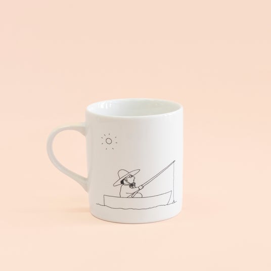 マグカップ(おさかなごはん)¥2,970/M. B. ゴフスタインの傑作「おさかなごはん」より。日課である釣りをしているおばあちゃんのマグカップです。オリジナルBOX付きで贈り物に喜ばれます。
