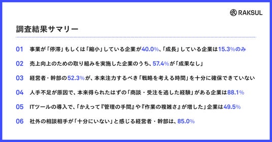 ラクスル株式会社売上向上や業務効率化の施策を阻む、構造的課題が明らかに ~第1回 調査結果サマリー~