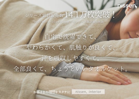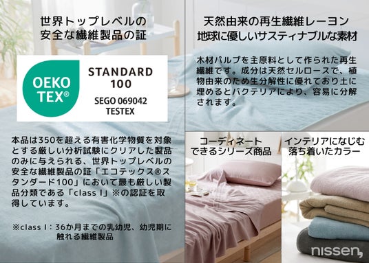 そんな『タオルケット派』におすすめなのが、ニッセンのロングセラー商品として多くのお客様にご好評をいただいている、天然由来の素材を使用した商品です。いずれもシリーズ累計販売数が14万枚を突破している人気商品です。