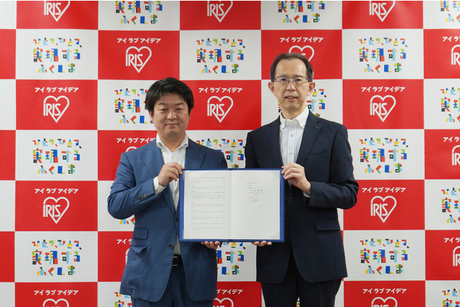 ▲(右)福島県知事 内堀 雅雄 様、(左)アイリスオーヤマ株式会社 代表取締役社長 大山 晃弘