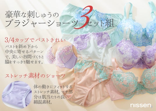 商品名:インナーセット 花柄刺しゅうブラジャーショーツ3セット組