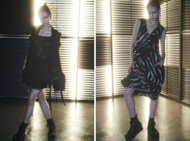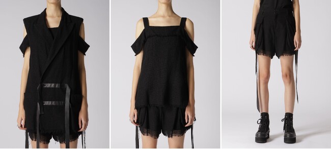 自在なセーフティピン遣いやメッシュネットを配したパンキッシュシリーズ、職人による絞り染めレースの幻想的な