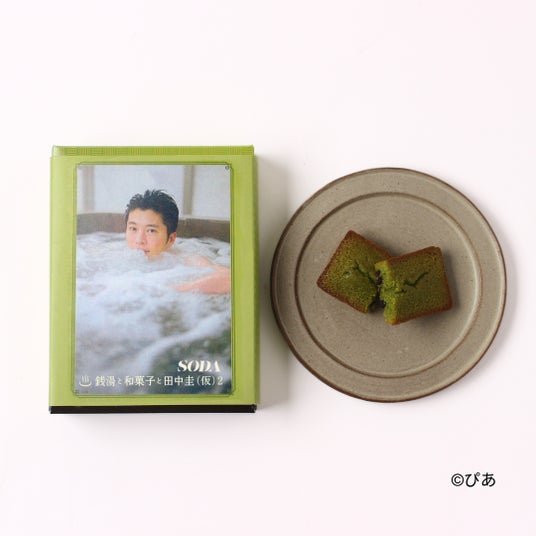 今回販売する商品は、連載のテーマである和菓子にちなみ、和菓子の名店「花園万頭」とコラボした和風フィナンシェ。抹茶を贅沢に使用し、豆芯までしっかりと甘味を含ませた花園万頭の代表銘菓「ぬれ甘なつと」を使用しています。フィナンシェのパッケージは『 銭湯と和菓子と田中圭(仮) 』の写真を使用した限定デザインとなっています。オリジナルチャーム付きミニフォークは、フィナンシェを食べるのにぴったりなサイズ!チャーム部分にも『 銭湯と和菓子と田中圭(仮) 』の写真を使用しています。チャームは取り外すことができるため、お手持ちのアイテムに付けることも可能です。どちらの商品もCake.jp限定商品です。