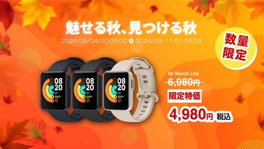 楽天市場「Show !t」では、9月4日20時から9月11日01時59分までの楽天スーパーセールにて、Xiaomi Mi Watch Liteを数量限定で最終在庫処分セールとしてご提供いたします。特別価格2,000円オフに加え、ポイント10倍の特典もお付けいたします。1.4インチの鮮やかなカラーディスプレイと、120種類以上のウォッチフェイスを備えたこのスマートウォッチは、洗練された日常を彩る一品として、ぜひおすすめいたします。