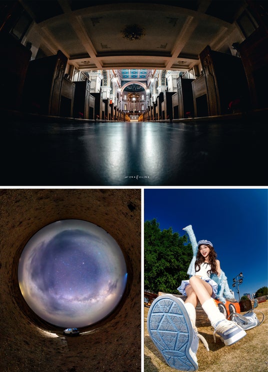一方、APS-Cカメラ、またはフルサイズ機のAPS-Cモードで使用する場合は、画面いっぱいに景色が広がる対角魚眼レンズとして活躍します。
