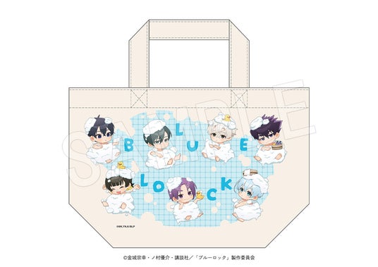 外気浴でリラックスする潔たち7人の姿の描き下ろしイラストを使用した「アクリルフィギュアスタンド」や「ロッカーキー風キーホルダー」、ミニキャライラストを使用した「ランチトート」などコラボならではの多数の新作アイテムが登場!