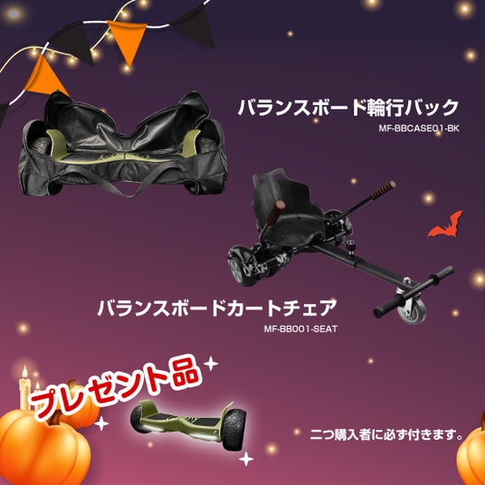 楽天市場「Show!t」では、10月24日(木)20:00~10月27日(日)09:59の期間中、MEISTER.Fの電動バランスボードを購入されたお客様全員に、11,000円相当の収納バッグとカートチェアを無料でプレゼントします。電動バランスボードは、重心移動で操作できるため、バランス感覚を養うのに最適です。ぜひご家族でお楽しみください。