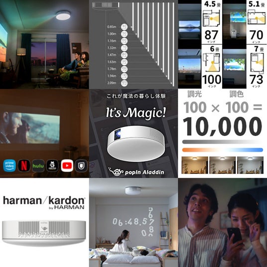 ・YouTubeやNetflixはもちろん、地上波や、録画番組も見られるテレビ超えの大画面人気の動画サービスが勢揃い。インテリアを邪魔しない、場所を取らない大画面、これはpopIn Aladdinが実現した新しいテレビ体験です。