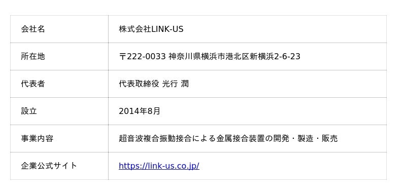 <株式会社LINK-US 代表取締役 光行 潤様 コメント> 私たちの『熱を発生させない接合技術』は、次世代の家電や電子機器の性能を極限まで引き出し、ものづくりのあり方を根底から変える可能性を秘めています。