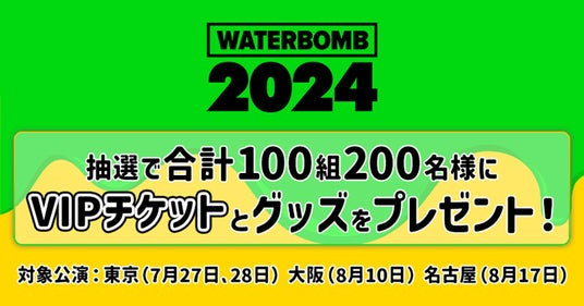 インターネット総合ショッピングモール「Qoo10(キューテン)」を運営するeBay Japan合同会社(本社:東京都港区、代表取締役:グ ジャヒョン)は、K-POPが誇る水の祭典、「WATERBOMB JAPAN 2024」の日本公演チケットをQoo10で販売しています。この「WATERBOMB JAPAN 2024」の開催を記念して、auスマートパスプレミアム会員向けに、東京、大阪、愛知公演の豪華VIPペアチケットとWATERBOMB公式グッズのセットを100組200名様に抽選でプレゼントするキャンペーンを2024年7月8日から実施します。