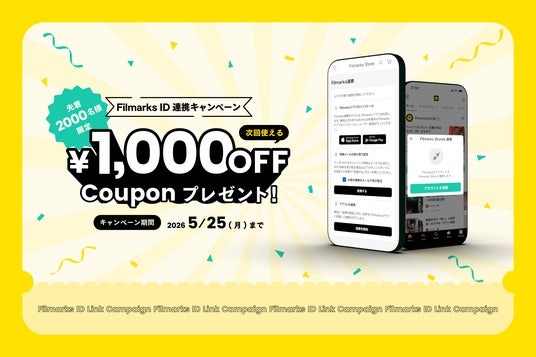 【先着2,000名様】今だけの「1,000円OFFクーポン」プレゼント!期間中にID連携を完了し、Filmarks Storeでお買い物(税込3,000円以上)をされた先着2,000名様に、次回のお買い物から使える「1,000円OFFクーポン」をプレゼント。過去にFilmarks Storeで購入履歴がある方は、ID連携を完了するだけでクーポンが発行されます(※1)。