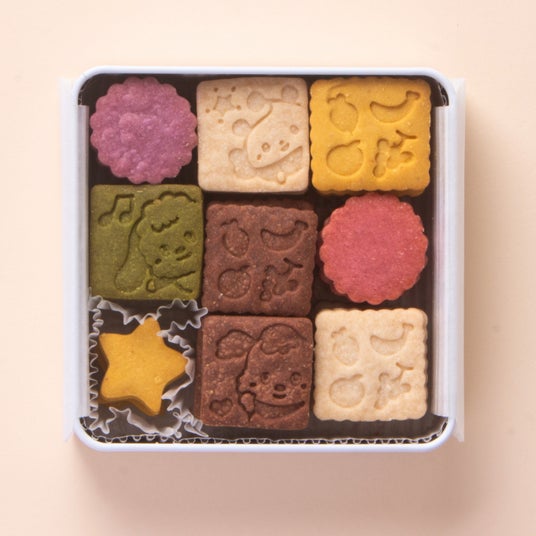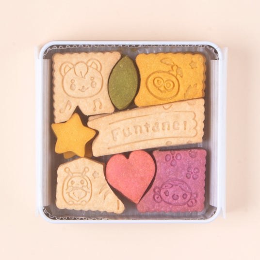 中に入っているクッキーは「お子さまもご家族もいっしょに美味しく召し上がってほしい」という想いから、原材料にもこだわり、「小麦・卵・乳」不使用です。小さなお子さまに寄り添った商品を目指し、保存料、香料、着色料も使用しておりません。「玄米粉」と「きび砂糖」を使用して作ったクッキーはやさしい甘さとなっています。