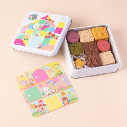 また今回オリジナルクッキー缶も販売します。おやつの時間にお子さまと楽しめるよう、「いないいないばあっ!」のクッキー缶には、クッキーの上にのせるとワンワンたちが穴から顔をのぞかせる「穴あきシート」や、「ファンターネ!」のクッキー缶には、切り離してパズルのようにして遊んだり、飾って遊んだりすることができる「パズルシート」をお付けしています。