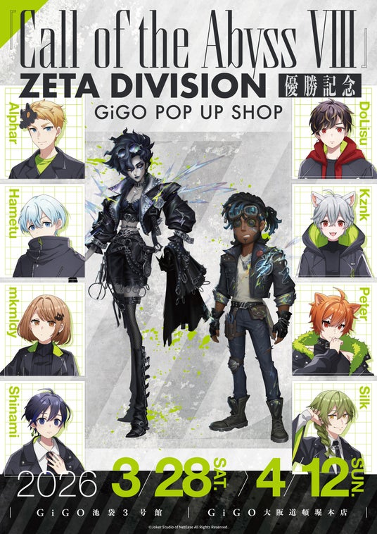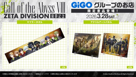 【ポップアップショップ】2026年3月28日(土)~4月12日(日)まで、全国のGiGO 2店舗にて「『Call of the Abyss VIII』優勝記念 ZETA DIVISION GiGO POP UP SHOP」が開催決定!