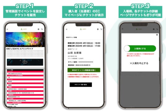 ユーザーはECショッップでグッズ購入と同じようにチケットの購入を行うことができ、購入したチケットはECショッップのマイページ上に表示されます。