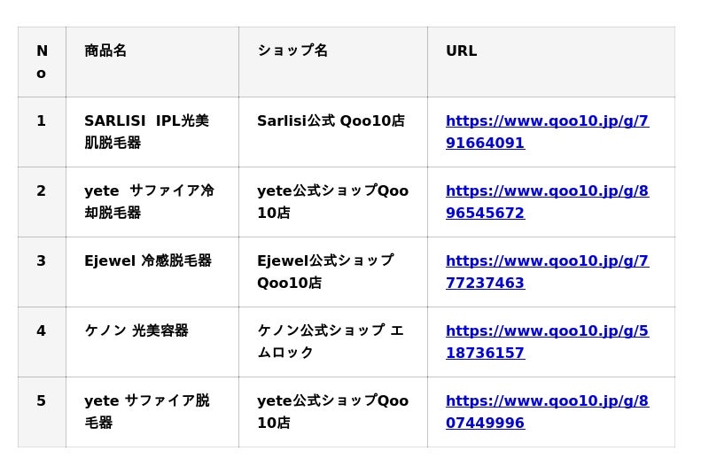 インターネット総合ショッピングモール「Qoo10」を運営するeBay Japan合同会社(本社:東京都港区、代表取締役:グ ジャヒョン)は、「脱毛器」の販売数TOP5*を発表いたします。