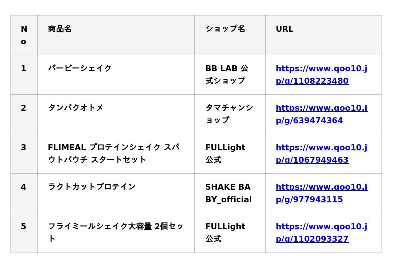 インターネット総合ショッピングモール「Qoo10」を運営するeBay Japan合同会社(本社:東京都港区、代表取締役:グ ジャヒョン)は、「プロテイン配合」の販売数TOP5*を発表いたします。