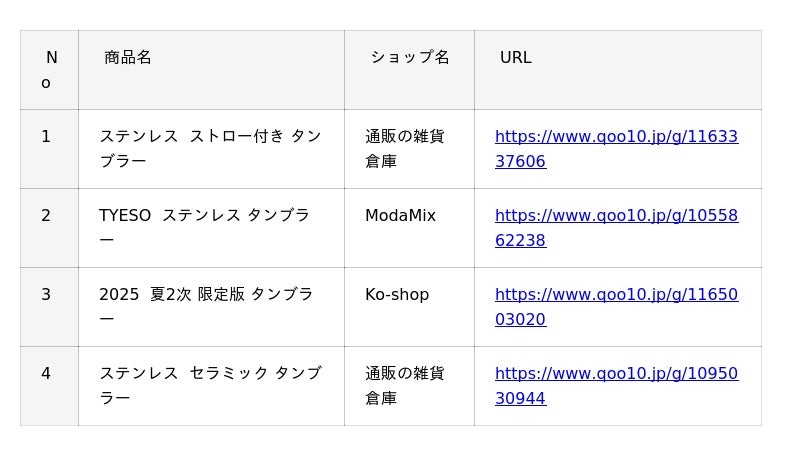 https://www.qoo10.jp/g/1095030944Qoo10「タンブラー」販売数ランキング