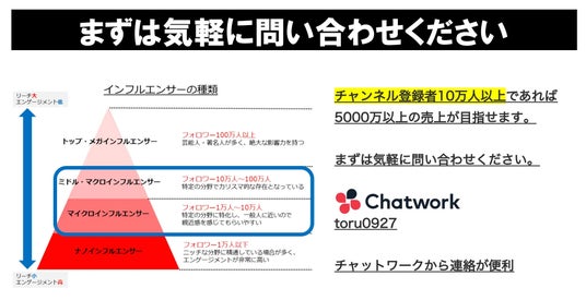 2022年からYouTuberをはじめとするインフルエンサーに対してP2Cによる商品プロデュースのサポート事業を行なっており、チャンネル登録者数平均10万人のYouTuberを平均5000万円以上のマネタイズ成功に導いている。