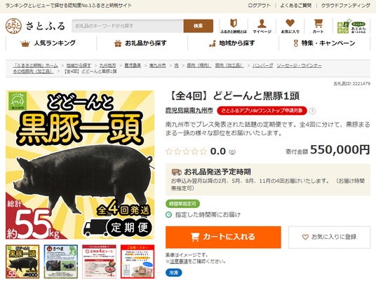 株式会社さとふる~鹿児島県南九州市より「どどーんと黒豚1頭」お礼品が登場!~