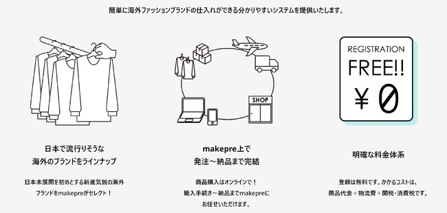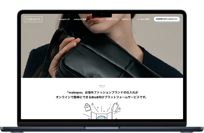当社は、「社内起業家育成制度」第9号案件として、海外ファッションブランドのB2B向けオンライン卸売プラットフォーム「makepre」(読み方:マケプレ)(以下、本サービス)を開始します。本サービスは、海外ファッションブランド(以下、海外ブランド)のアパレル、バッグ、シューズなどの仕入れをECサイト上で実施することができる、日本のバイヤー向けのオンライン卸売プラットフォームサービスです。