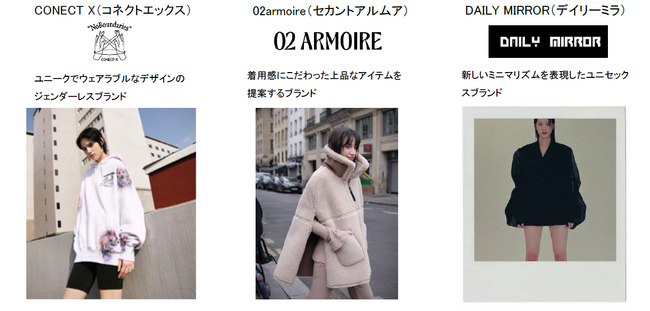 本サービスの実証実験の第1弾では、韓国で注目を浴びているブランドや韓国の新興ブランドなど、日本未展開のブランドを含む韓国の約30ブランドの仕入れをECサイト上で実施することができます。10月11日(水)からはECサイトへの先行会員登録が、10月25日(水)からはECサイト上で仕入れを行うことが可能となります。また、定期的にバイヤー向けの商品展示会を実施し、ECサイトに掲載している商品の実物を見ることができる機会を提供します。