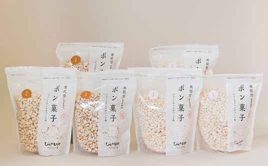 https://www.satofull.jp/products/detail.php?product_id=1250374石川県奥能登産のうるち米「能登ひかり」を使ったポン菓子です。白米と玄米の2種詰め合わせで、白米は優しい甘さ、玄米は香ばしい香りがクセになるおいしさです。