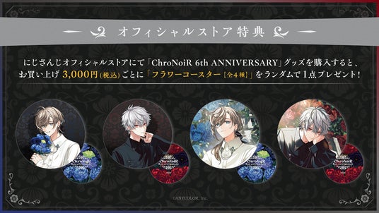 「ChroNoiR 6th ANNIVERSARY」のタグがついている商品を税込3,000円以上ご購入いただいたお客様に「特典フラワーコースター(ランダム)」をプレゼント!