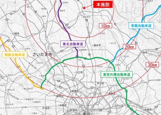 本施設は、埼玉県杉戸町に位置し、国道4号線・16号線に近接、さらには圏央道「幸手IC」および東北自動車道「岩槻IC」まで約11kmと、2つのインターチェンジへのアクセスに優れています。これは、東京・埼玉・神奈川・千葉等の大消費地を含む首都圏全域への広域配送に適した物流拠点であることを意味します。