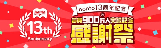 「honto会員900万人突破記念大感謝祭」を2025年4月15日(火)から順次開催。13周年記念キャンペーンも併せて開催中。