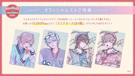 「ChroNoiR ニューレトロスタイル」のタグがついている商品を税込3,000円以上ご購入いただいたお客様に「特典クリアカード(全4種ランダム)」をプレゼント!