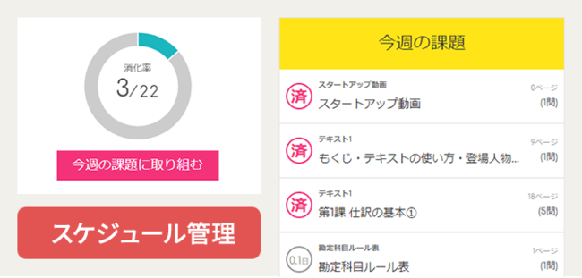 今回対応したWEB学習ツール「合格デジタルサポート」では、あなたの受験目標日と学習進度に合わせて、毎週の課題をご提示します。
