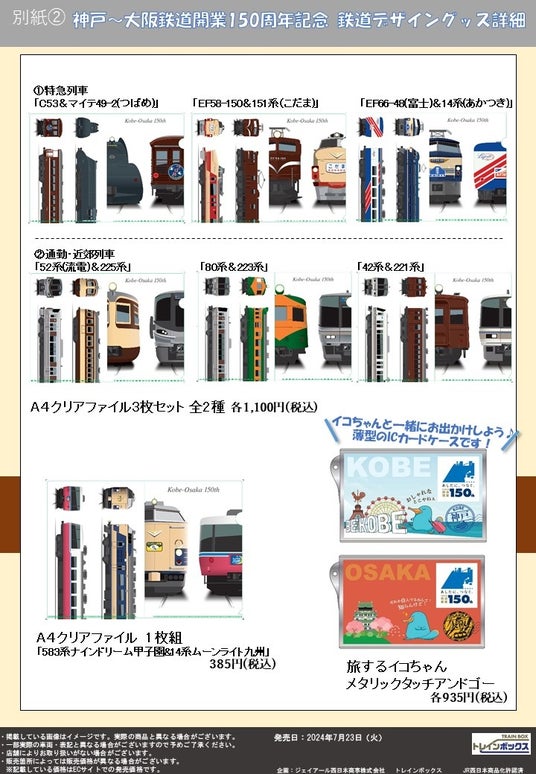 神戸~大阪鉄道開業150周年記念 鉄道デザイングッズ詳細(別紙1.~3.)