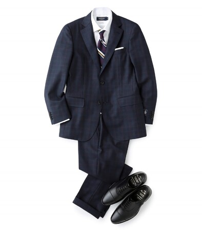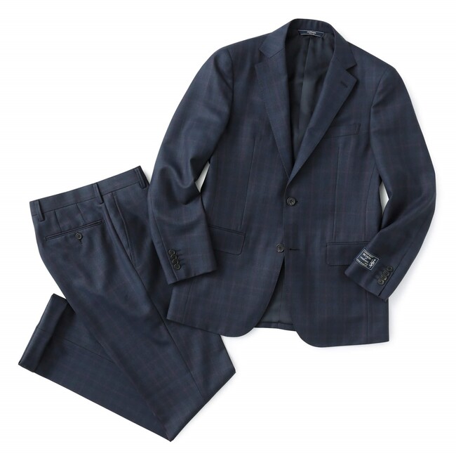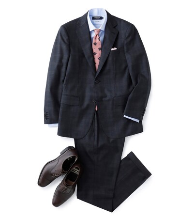 厳選された高級原料のウールを使用し、オリジナルの整理工程によって得られる優雅なドレープ感と光沢が特徴の「PREMIUM CLOTH(プレミアムクロス)」。ミディアムグレーのチェック柄が落ち着いた大人の雰囲気を演出してくれます。一見、無地にも見えるのでコーディートがしやすく、シャツやネクタイを選ばない汎用性の高いスーツです。