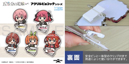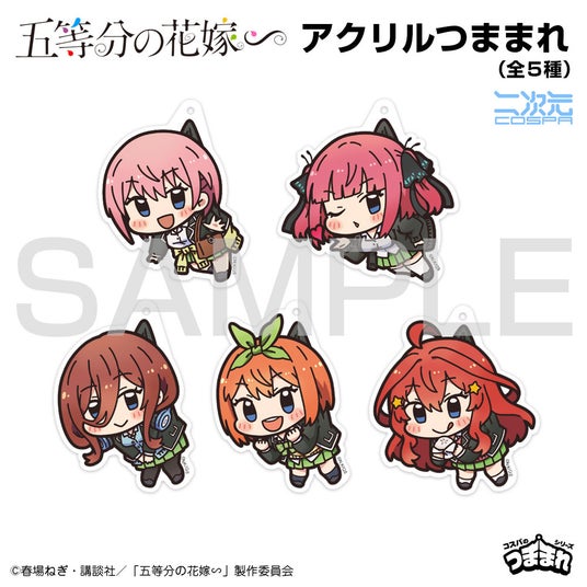 TVスペシャルアニメ『五等分の花嫁∽』より、一花、二乃、三玖、四葉、五月 5人それぞれの「アクリルスタンド」や「アクリルつままれ」をはじめ、「アクリルピョコッテ」などの新グッズが二次元コスパから登場いたします。