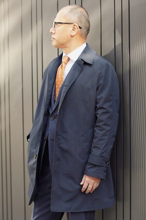 高密度のナイロンタッサー素材にワッシャー加工を施したスプリングコートです。マットでナチュラルな表情が紳士心をくすぐります。軽量感を追求し、着丈もすっきりとしたデザインのため、ビジネス・カジュアル問わず様々なシーンで着こなせます。