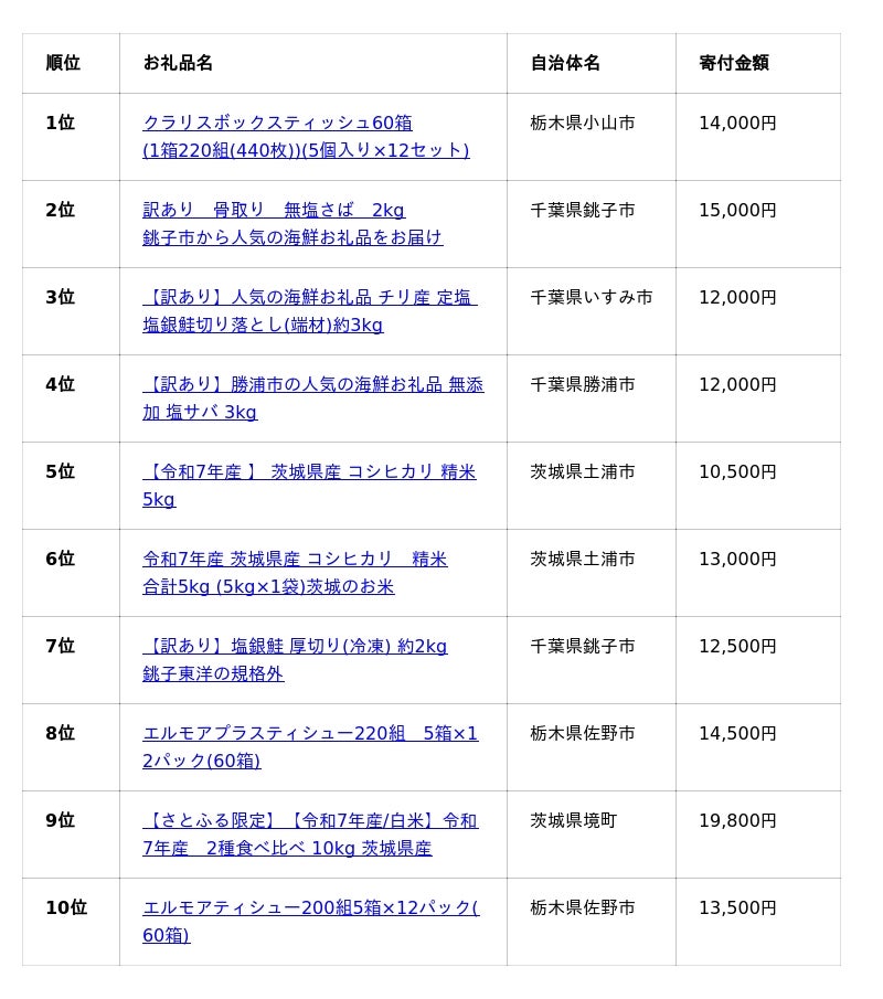 ■<関東版>2025年ふるさと納税人気お礼品ランキング(確定)