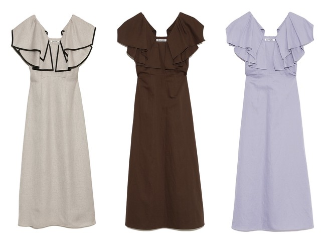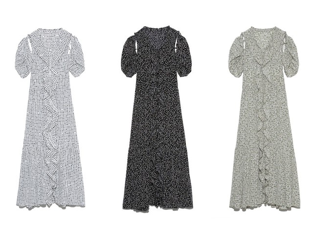 【フリルオーバーワンピース】たっぷりとあしらわれたフリルやバルーンスリーブなど、女性らしいディテールを詰め込んだワンピース