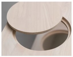 「ケイヴシェルフ」の棚板の穴はフタ付き。どこを開けるか選べます。