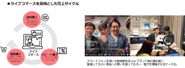 ライブコマースは、テレビショッピングのようにBefore & Afterが実際に見せられる商品は売上につながりやすいのが特徴です。また、ライバーに対して直接質問することができるため、ブランド・商品理解を深めるためのマーケティングや、実際に商品の売上拡大を目指す販売チャネルとしての活用が可能です。