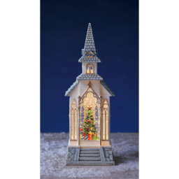 https://dinos.jp/mfi9o/光満ちる教会の中に広がる幻想的なシーンが聖夜を盛り上げます美しい教会の形のスノードーム。光満ちる教会の中に幻想的なシーンが広がります。スイッチを入れると暖かな光がともり、ツリーを中心に、ラメがキラキラと雪のように舞い躍ります。