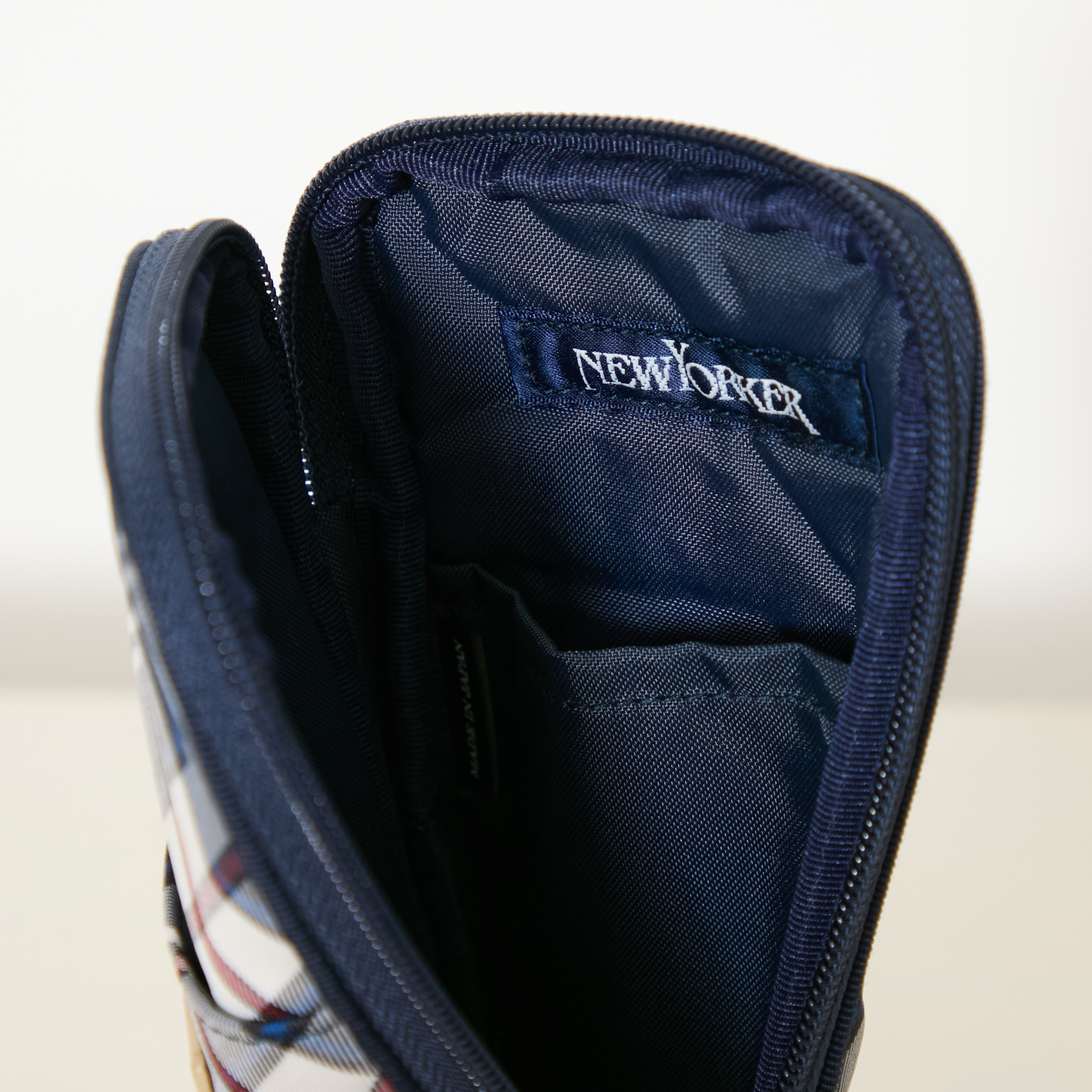 可動が広い収納ポケットニューヨーカーオリジナル仕様の内装。ゴム入りのポケットが両側に付いており、コスメ類はもちろんガジェットの収納にも一役買います。