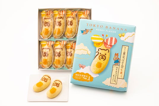 【羽田空港限定】空とぶ東京ばな奈くまッス。 はちみつバナナ味、「見ぃつけたっ」テーマは“羽田空港から飛んできた、子熊印のはちみつ便”。ふかふか可愛い子熊顔の東京ばな奈が、はちみつバナナ味のクリームをおなかにかかえてとろ~りおいしい東京ばな奈をみなさまにお届けします。