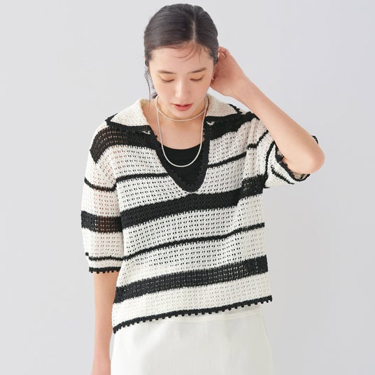 消臭性のあるリコリス(甘草)をレーヨンに練り込み、環境にやさしい紙糸の再生繊維で編み立てたトップス