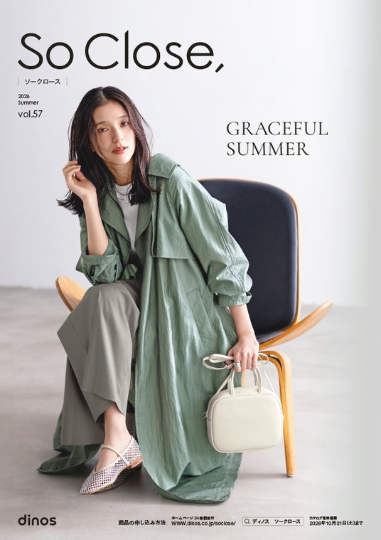 株式会社dinos(本社:東京都中野区、代表取締役社長:加藤 浩輔)は、“自分らしさ”を大切にするこだわりの上品カジュアルスタイルを提案するファッションブランド『So Close,(ソークロース,)』2026夏号において、サステナブルな素材を使ったアイテムの特集企画を掲載し、2026年3月10日に発刊します。また、ディノスオンラインショップにおいて特集企画ページに掲載している各商品を販売いたします。