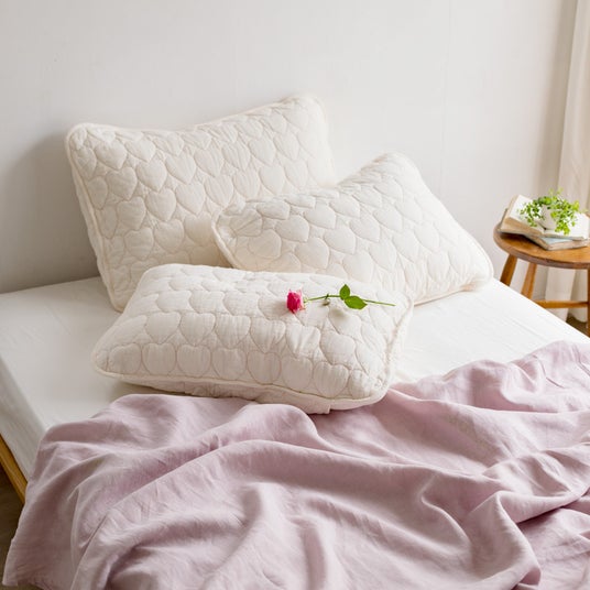 第1弾は、殿堂入り寝具!パシーマ(R)EXシリーズから「ハート柄キルト ピローケース」が登場 「バイヤーの告白」プレゼントキャンペーン第1弾は、ガーゼと脱脂綿を使用した肌にやさしい寝具として長年にわたりファンを増やし続けているパシーマ(R)から、ディノス55周年を記念して愛と感謝を込めたハートキルトのピローケースが登場です。素肌にやさしく、洗えば洗うほどにふわふわに育つパシーマ(R)のトレードマークであるキルトを、ハートパターンにアレンジしたスペシャルデザインが、ふれるたび眠るたびに幸せな気分にさせるデザインです。愛用者の方も、初めての方も、ディノス限定の愛あふれるパシーマ(R)をお見逃しなく!