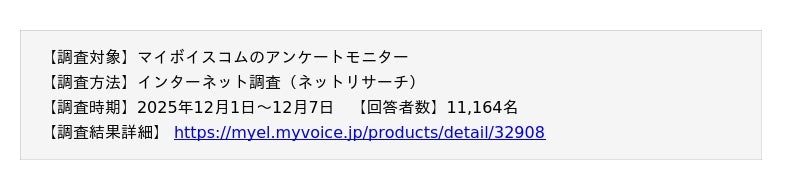 調査結果を掲載・引用いただく場合は、必ず「マイボイスコム調べ」もしくは「マイボイスコム(株)調べ」と表記をお願いいたします。