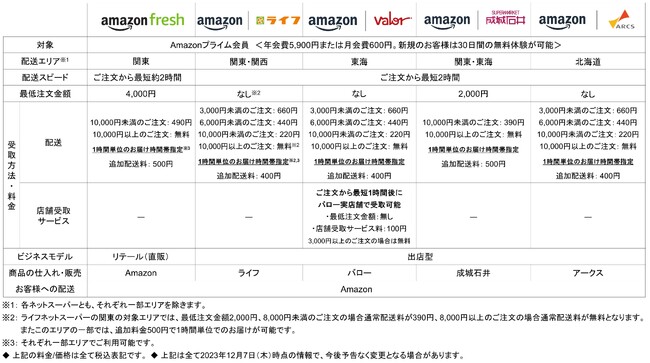 https://www.amazon.co.jp/fresh )を、食品スーパーライフとの協業により、東京・神奈川・埼玉・千葉・大阪・京都・兵庫の一部エリアにおいてライフネットスーパー(